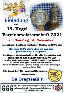 Kegel Vereinsmeisterschaft 2021 mit Mittagessen zuvor im Gasthaus , danach ca. 13:00 Uhr