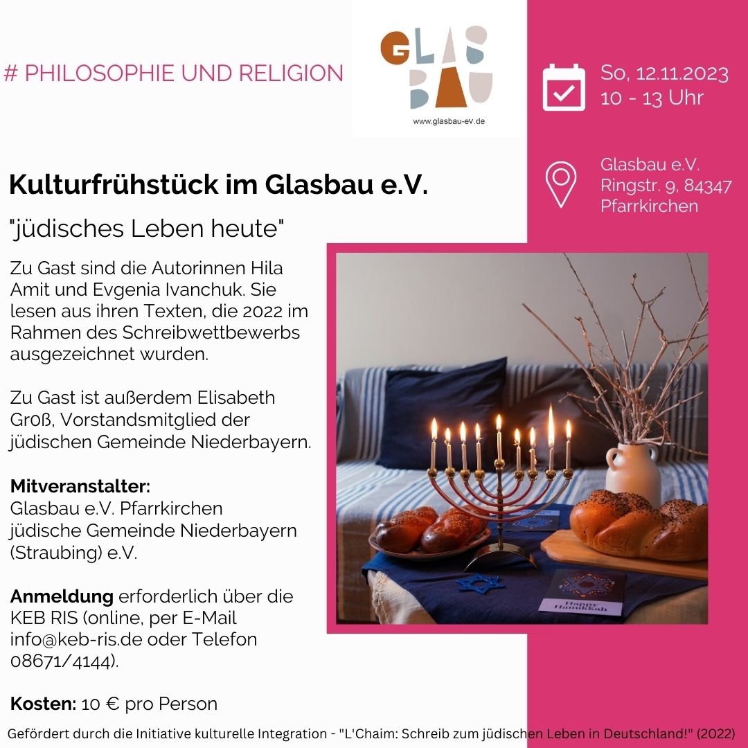 Die Reihe „Kulturfrühstück“ des Glasbau e.V. steht unter dem Motto „jüdisches Leben heute“.