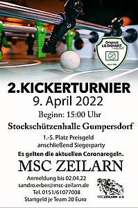 9. April 2022 findet in der Stockschützenhalle Gumpersdorf das MSC Kickerturnier statt.